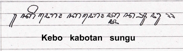 Tulisan Aksara Jawa Kebo Kabotan Sungu, Tuladha Ukara